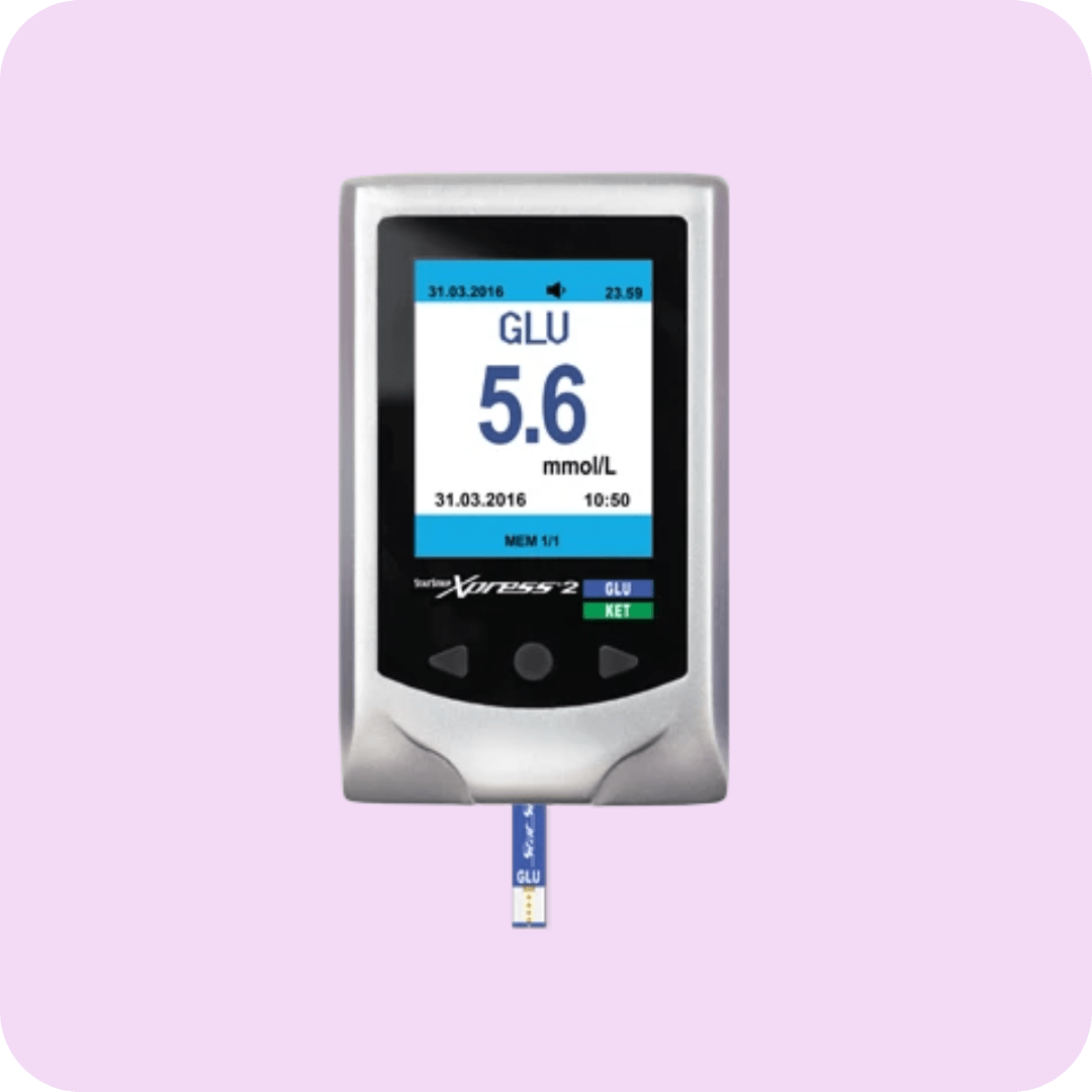 The StatStrip Glucose test strips works with the Xpress-2 Glucose/Ketone meter from Nova Biomedical. It comes as 2 vials of 50 tests, a 100 tests in total.